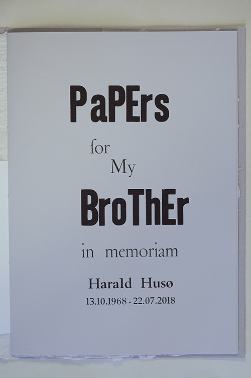 "Papers for My Brother" er skrevet til minne om min bror, Harald Husø