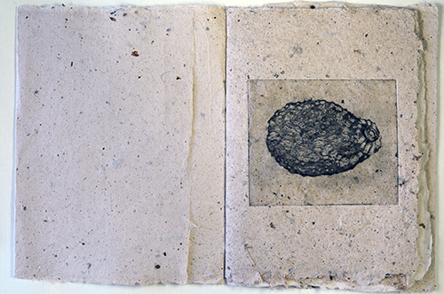 "The Incomprehencible" is an eatable book, printed on handmade papers made of avocado and abaca. It has an illustration in drypoint of an avocado. The book explore the concept of comprehensability - whether it is easier to understand something when you eat it and if so - eating this particular book: is it the book one understands or the avocado papers?