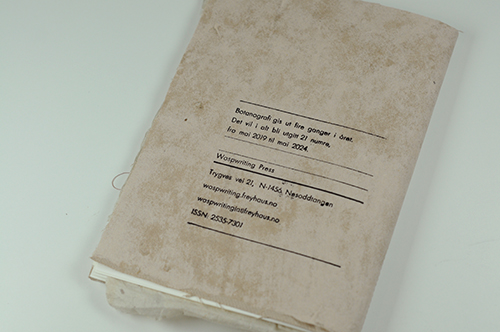 Omslaget er av håndlaget linpapir foret med silke