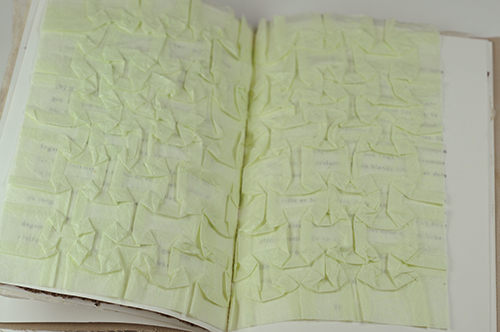 The cover is made of handmade linen paper with silk fabric